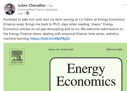 - Since 2025, I am Co-Editor at Energy Economics, in charge more particularly of Finance papers.